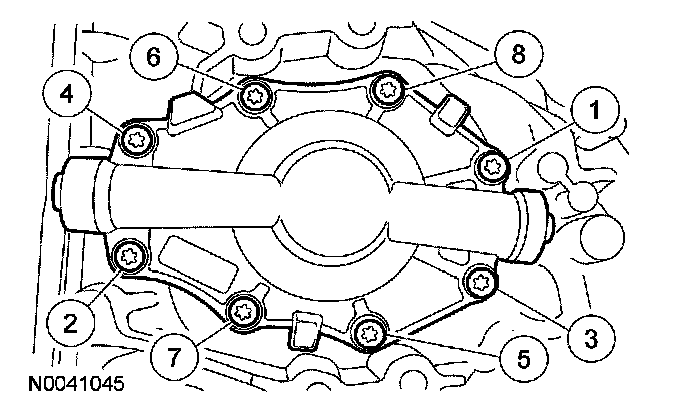 18. Using new bolts, install the secondary cover and tighten in the sequence shown, in 2 stages: