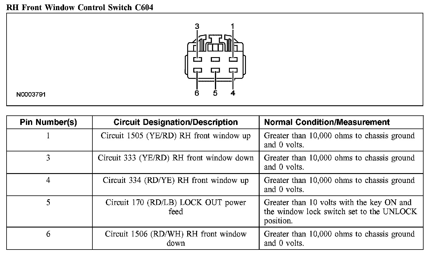 RH Front Window Control Switch C604: