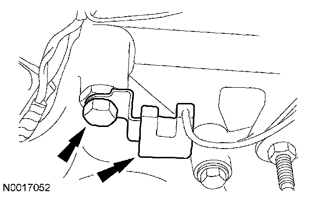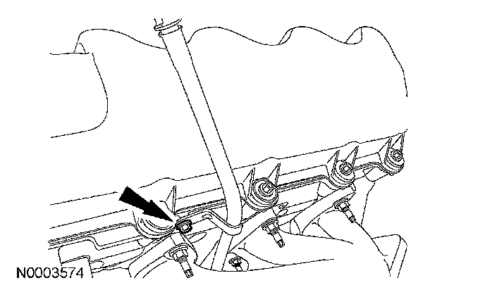 94. Connect the 2 engine wiring harness retainers to the LH valve cover studs.