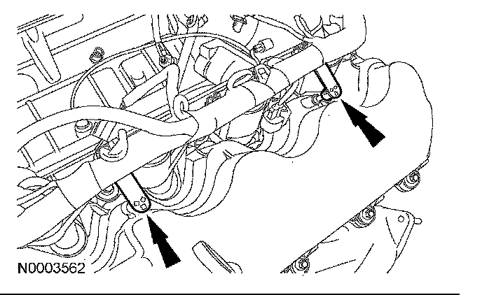 95. Connect the 2 engine wiring harness retainers to the RH valve cover studs.