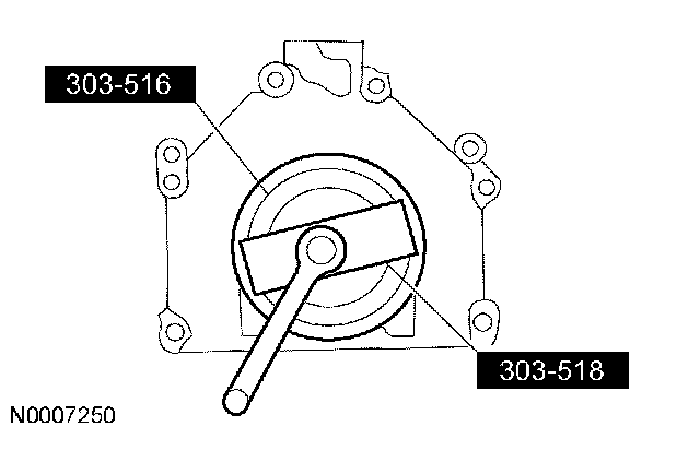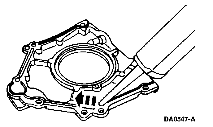 Apply a 4 mm (0.16 inch) bead of silicone gasket and sealant around the crankshaft rear seal retainer sealing surface.