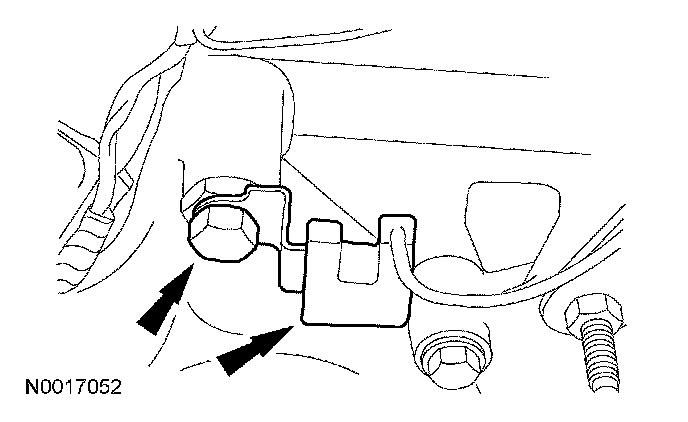 ^ Detach the engine wiring harness retainer from the stud bolt.