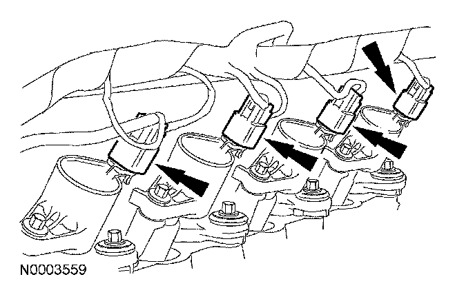 Disconnect the 4 RH and 4 LH ignition coil electrical connectors.