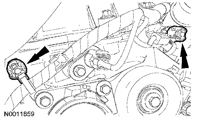 Disconnect the RH and LH Variable Camshaft Timing (VCT) solenoid electrical connectors.