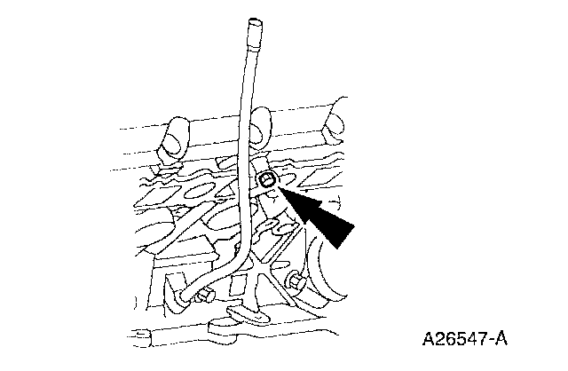 24. Remove the bolt and the oil level indicator tube.