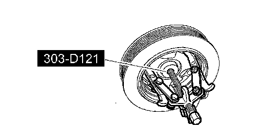 41. Remove and discard the crankshaft pulley bolt. Using the special tool, remove the crankshaft pulley.