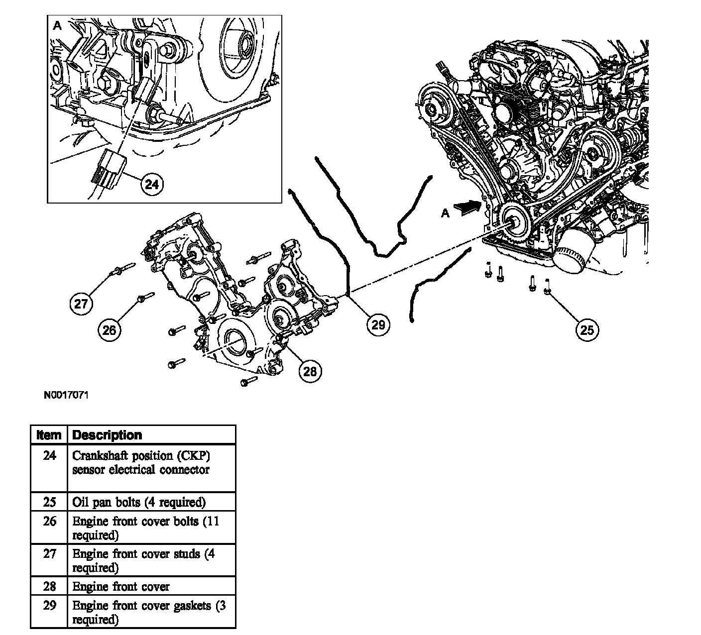 NOTE: Make sure that the engine front cover gasket is in place on the engine front cover before installation.