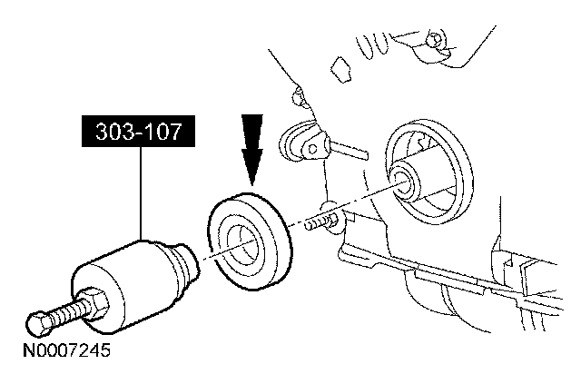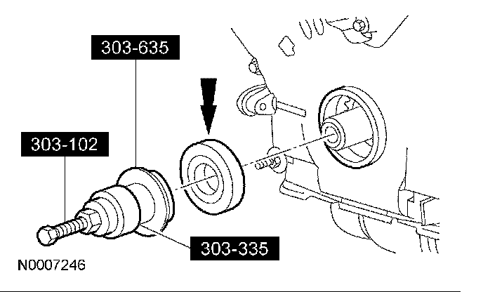 4. Remove the RH side idler pulley. For additional information, refer to Drive Belts, Mounts, Brackets and Accessories.