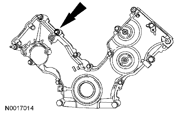 NOTE: If the engine front cover is not secured within 4 minutes, the sealant must be removed and the sealing area cleaned. To clean the sealing area, use silicone gasket remover and metal surface prep. Follow the directions on the packaging. Failure to follow this procedure can cause future oil leakage.