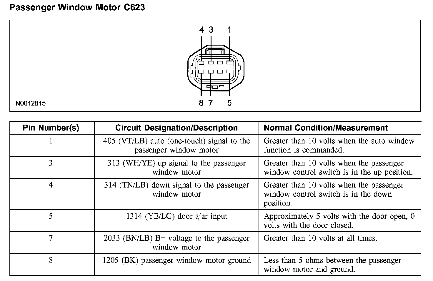 Passenger Window Motor C623: