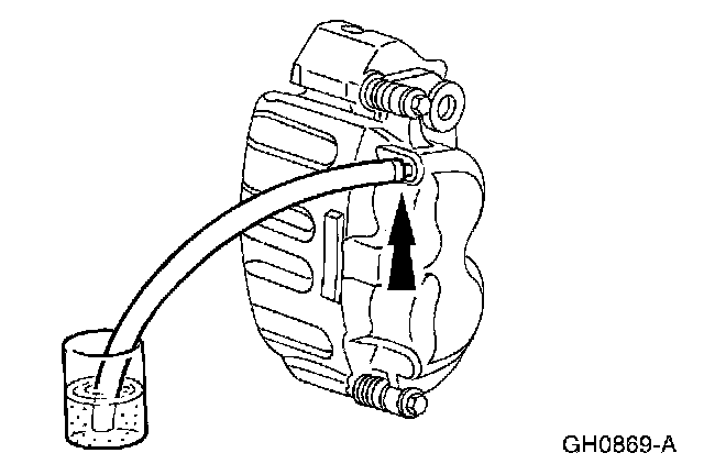 6. Continue bleeding the rest of the system, going in order from the LH rear bleeder screw to the RH front disc brake caliper bleeder screw, ending with the LH front disc brake caliper bleeder screw.