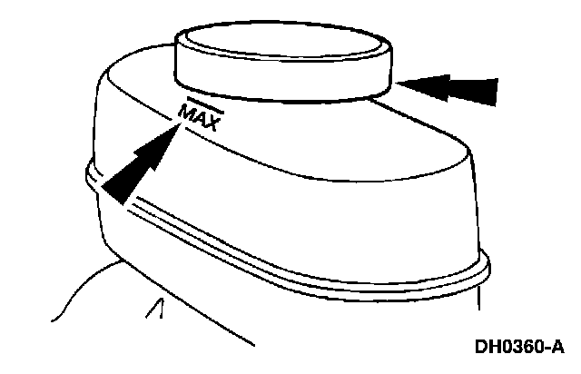 1. Clean all dirt from and remove the brake master cylinder filler cap and fill the brake master cylinder reservoir with the specified brake fluid.