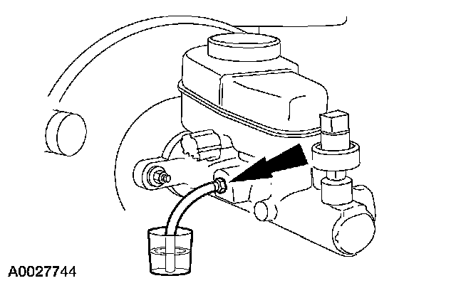 Loosen the master cylinder bleeder screw until brake fluid flows out of the drain tube.