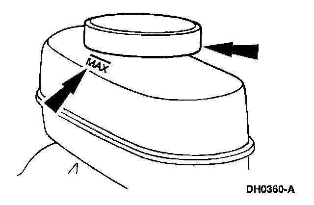 1. Clean all dirt from and remove the brake master cylinder filler cap, and fill the brake master cylinder reservoir with the specified brake fluid.