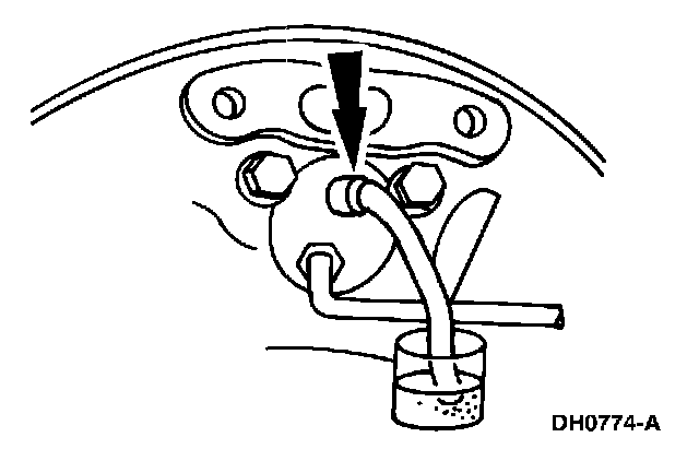 15. Connect one end of a flexible tube to the master cylinder bleeder screw. Submerge the other end in a container partially filled with the specified brake fluid.