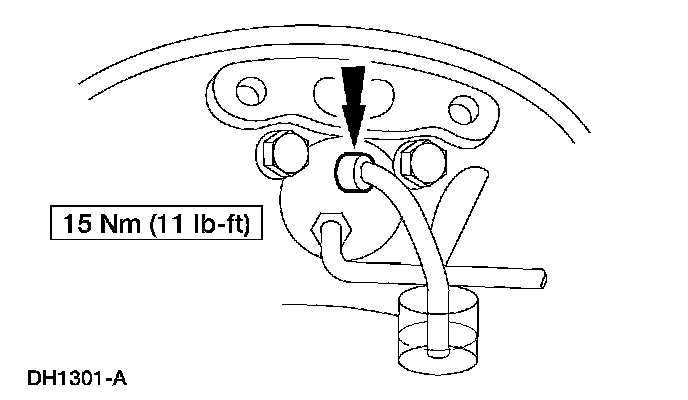 2. Connect a clear drain tube to the RH rear bleeder screw and the other end in a container partially filled with recommended brake fluid.