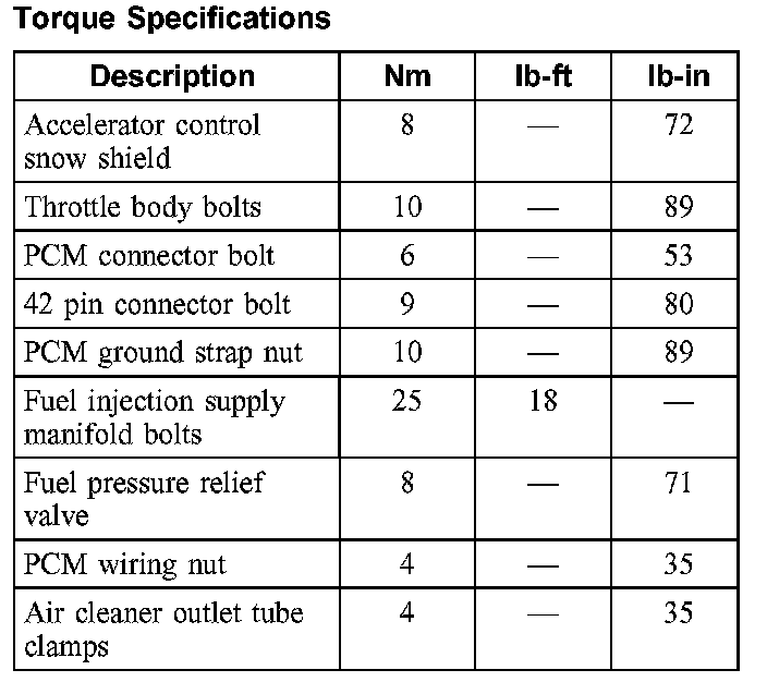 Torque Specifications: