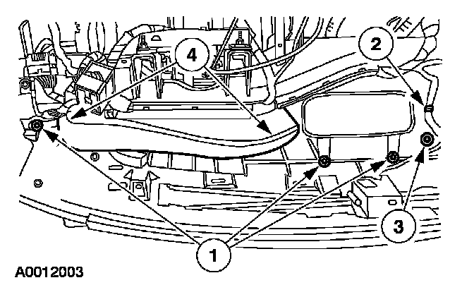 4 Detach the driver side and center register duct from the registers. Remove the driver side and center register duct.