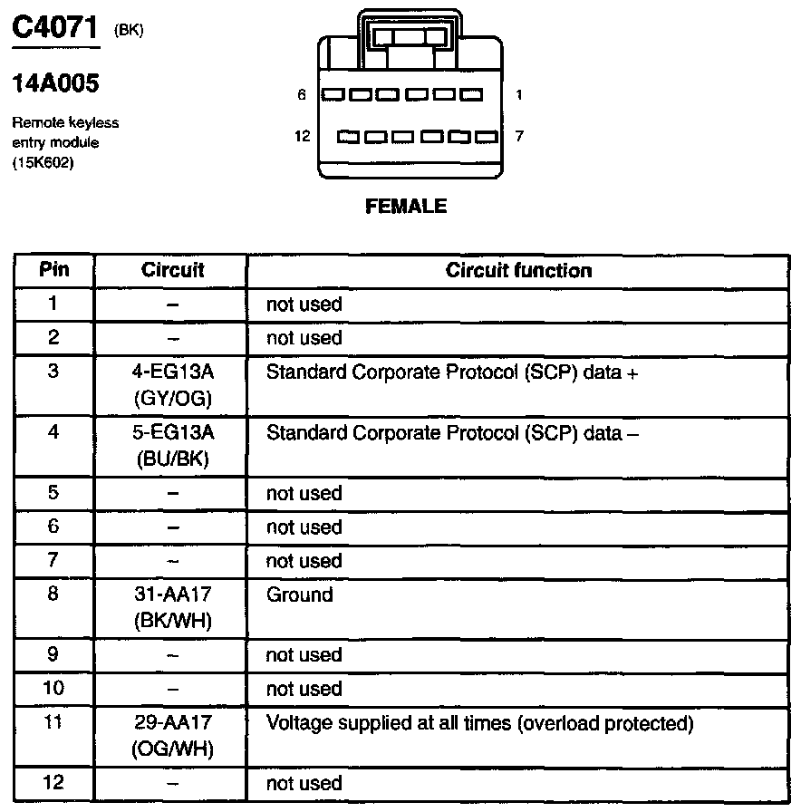 Keyless Entry Module: Diagrams