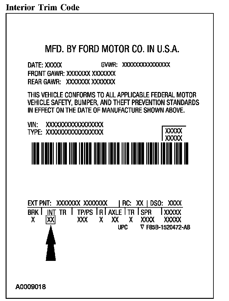Interior trim codes are listed as a two-part code. The first character identifies the interior trim type. The second character identifies the interior trim color.
