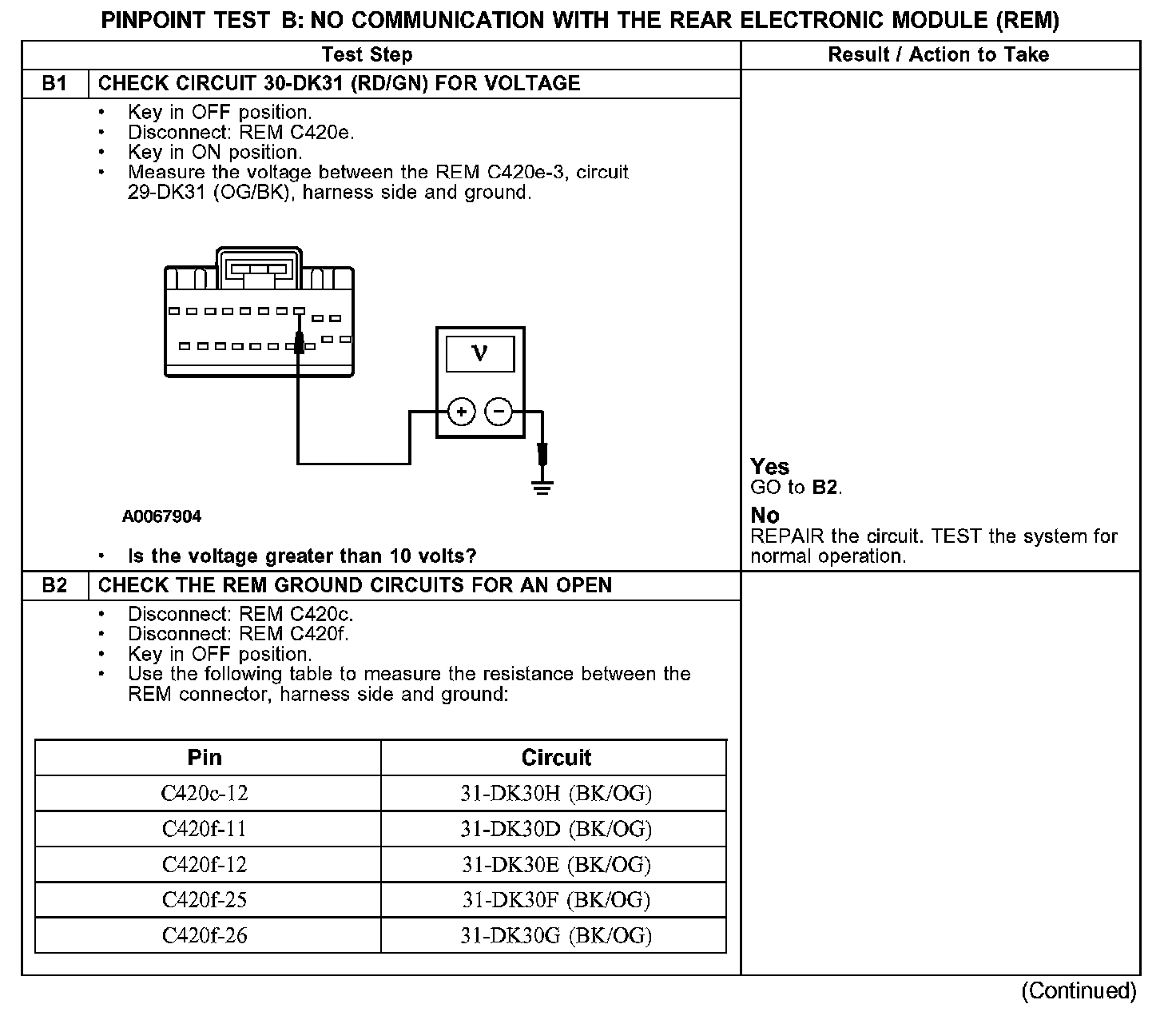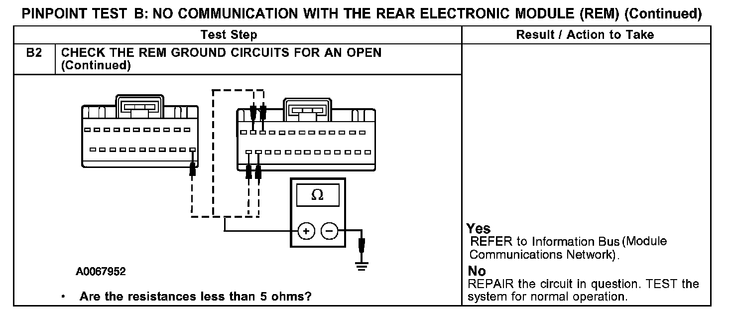 PINPOINT TEST B: NO COMMUNICATION WITH THE REAR ELECTRONIC MODULE (REM)B1-B2: