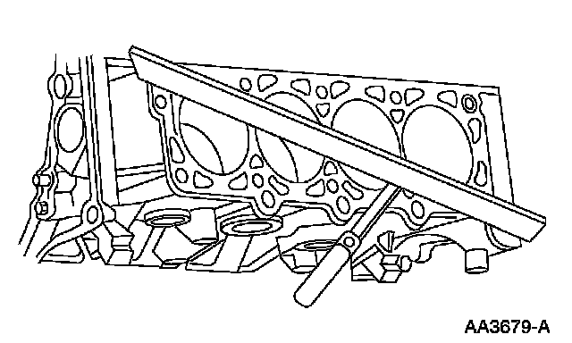 Use a straight edge and a feeler gauge to inspect the cylinder block for flatness. If the cylinder block is distorted, install a new short block assembly.