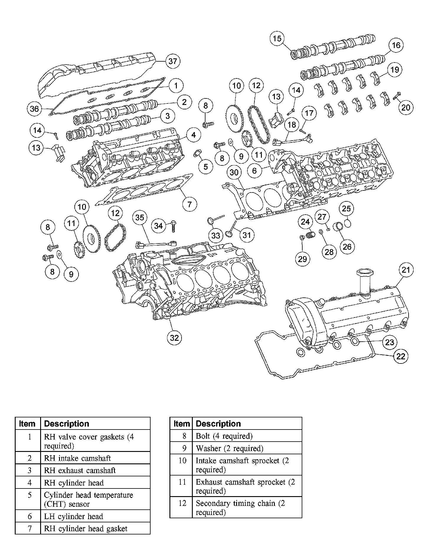 Install the RH camshaft bearing caps.