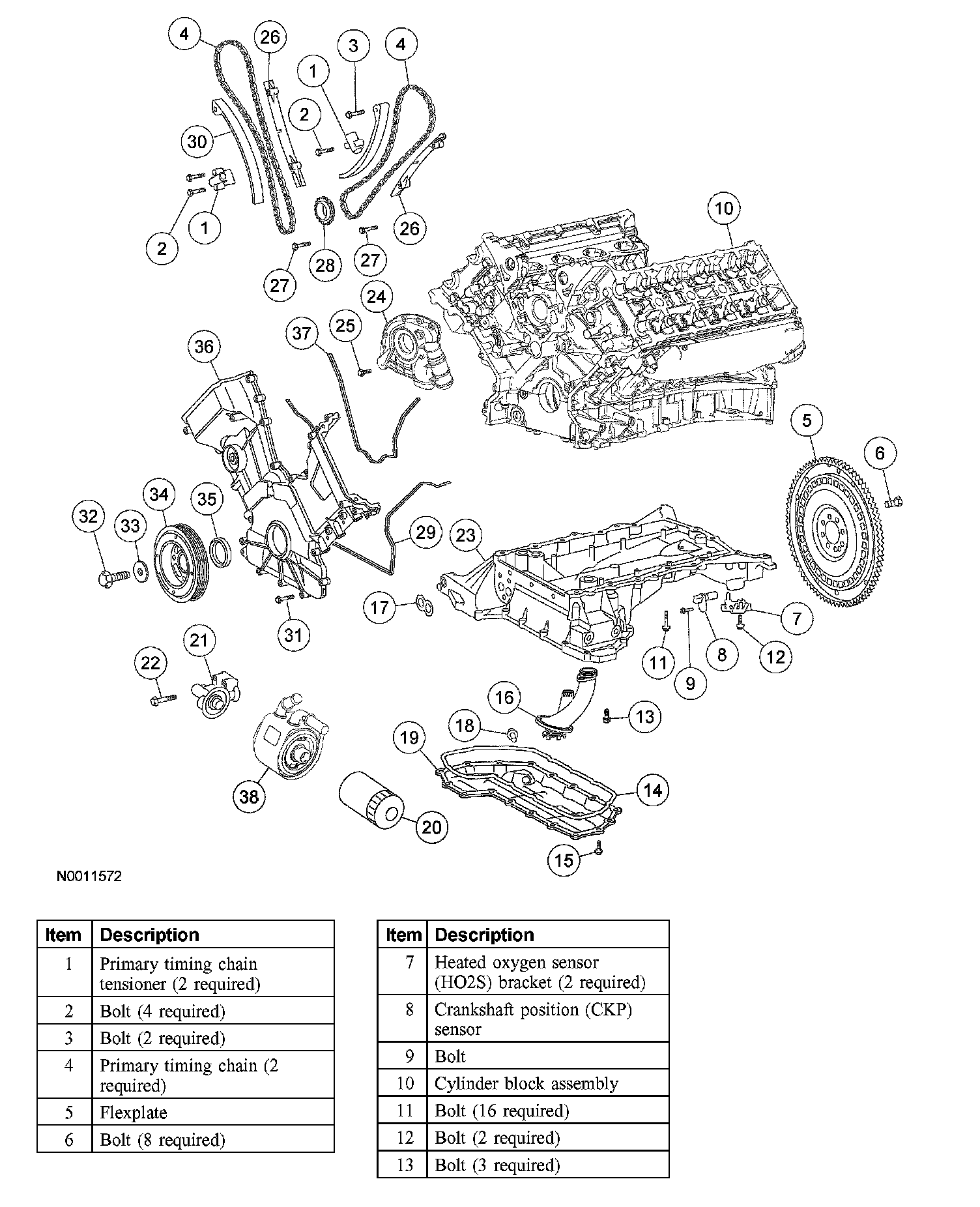 36. CAUTION: The exhaust camshaft sprocket bolt must be fully tightened before tightening the intake camshaft sprocket bolt.