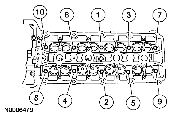 ^ Stage 1: Tighten bolts 1 through 10 to 20 Nm (15 ft. lbs.).