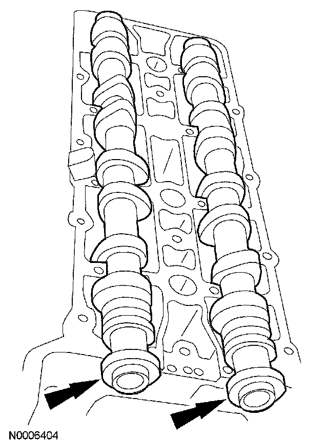 31. CAUTION: The flats on the camshaft must completely contact the special service tool or damage to the camshafts can occur. Slowly draw the special tool down evenly until it is fully seated on the camshaft flats.