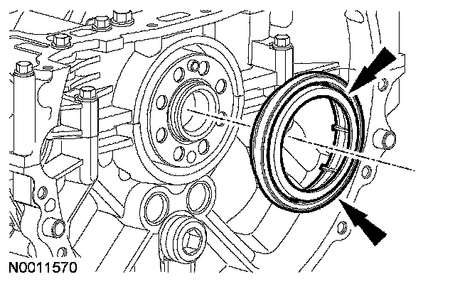 NOTE: Lubricate the cylinder block bore and the crankshaft with clean engine oil before installing the seal.
