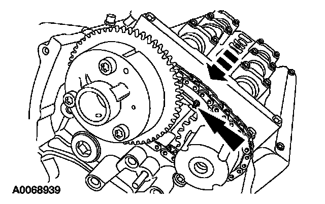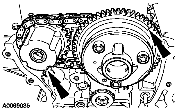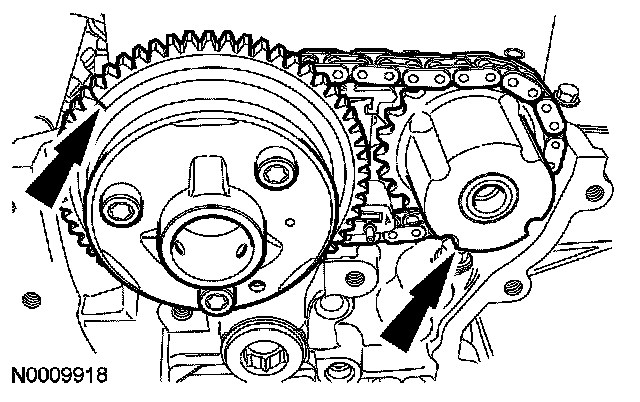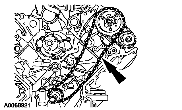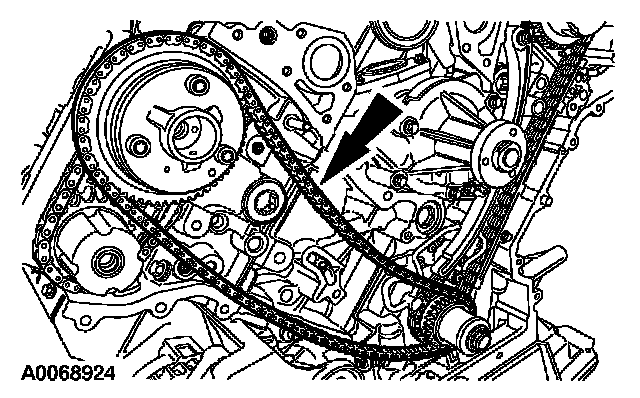 ^ Position the timing chain over the LH intake camshaft sprocket.