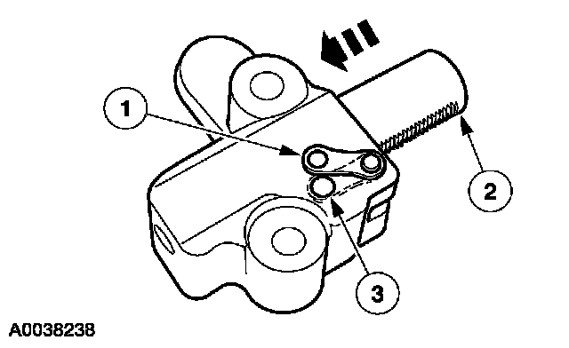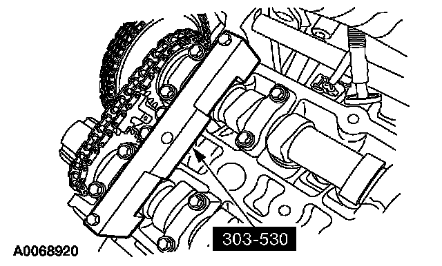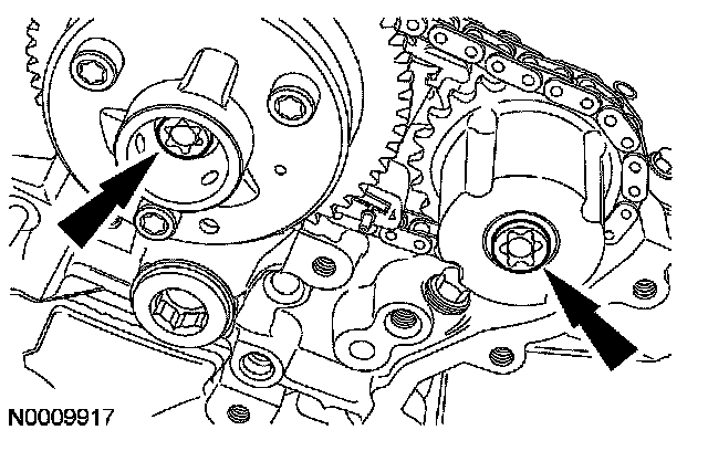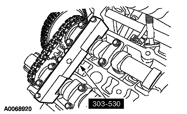 CAUTION: Using the special tool, apply 10 Nm (89 inch lbs.) counterclockwise to the LH exhaust camshaft sprocket.