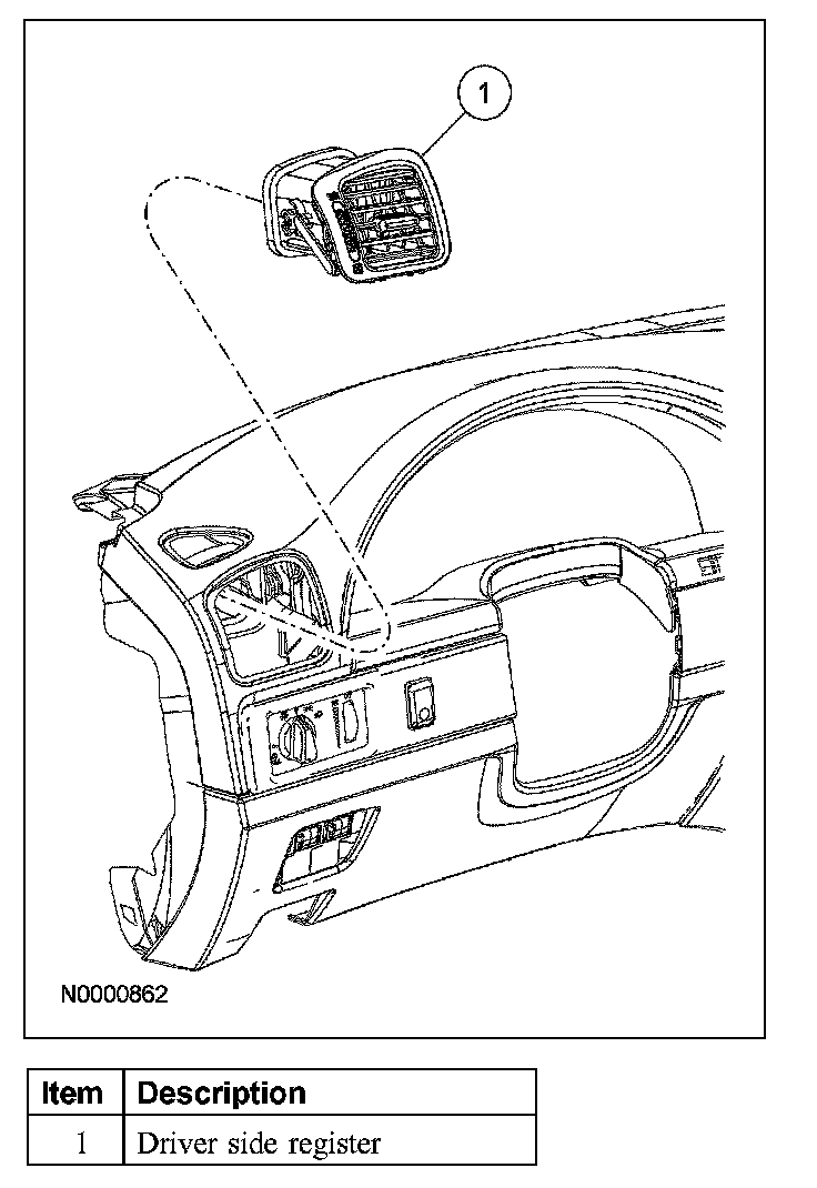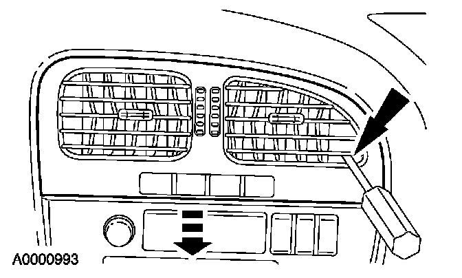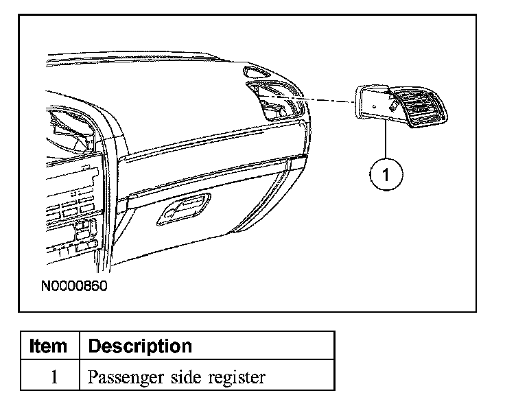 1. Using a flat screwdriver to depress the tabs, remove the passenger side register.