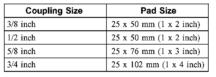 2. Cut an abrasive pad from maroon colored 3M Scotch Brite(R) with the dimensions corresponding to the coupling size.
