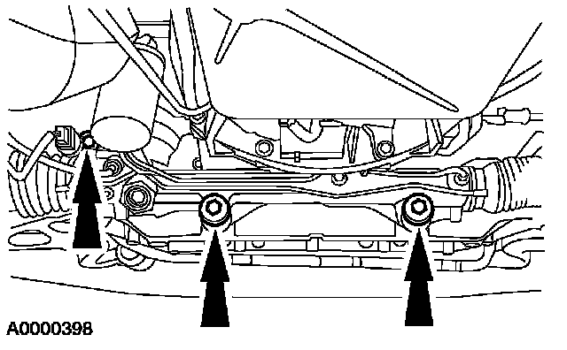 3. Raise and support the front end and the No. 2 crossmember.