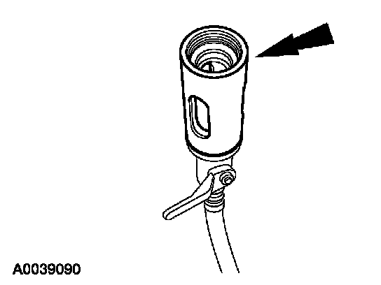 5. Install the dye/lubricant injector between the low-side service gauge port valve and the refrigerant service station or manifold gauge set.