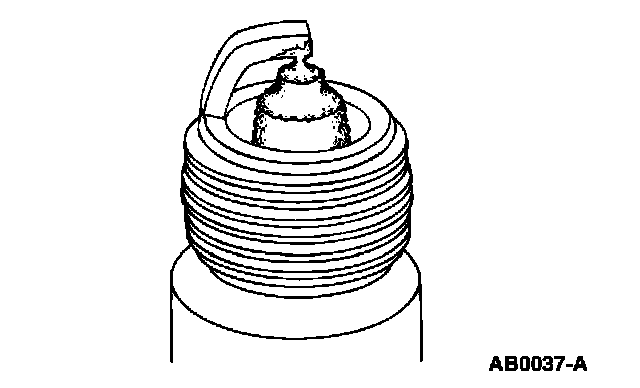 ^ Check for wet, black deposits on the insulator shell bore electrodes, caused by excessive oil entering the combustion chamber through worn rings and pistons, excessive valve-to-guide clearance or worn or loose bearings.