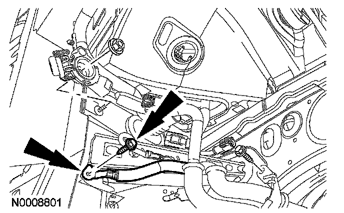 9. Remove the body ground cable bolt and position the body ground cable lead aside.