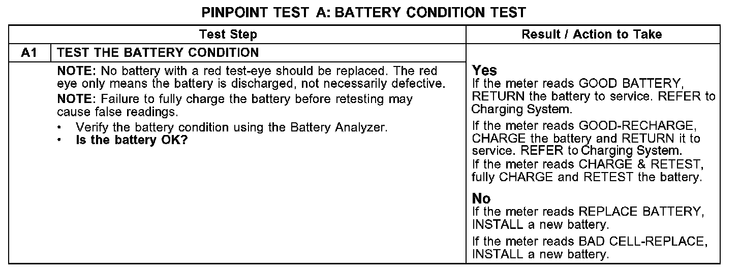 PINPOINT TEST A: BATTERY CONDITION TEST