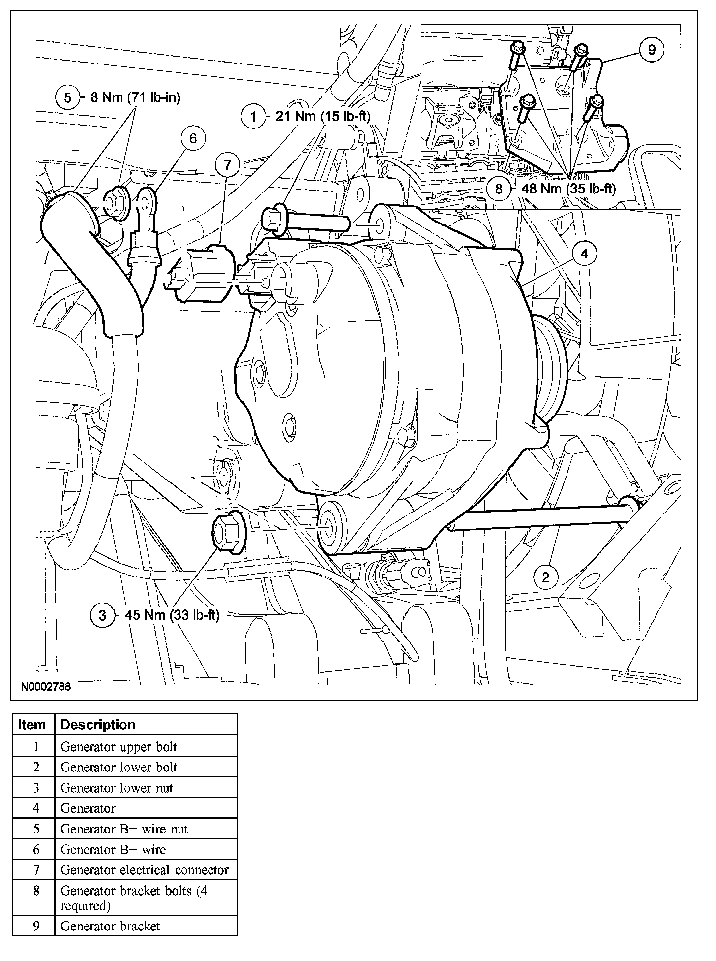 10. If necessary, remove the 4 bolts and the generator bracket.