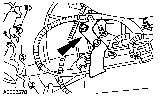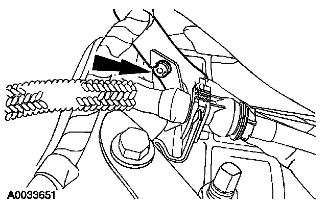 16. Install the wire harness to the top of the transmission shift cable bracket.