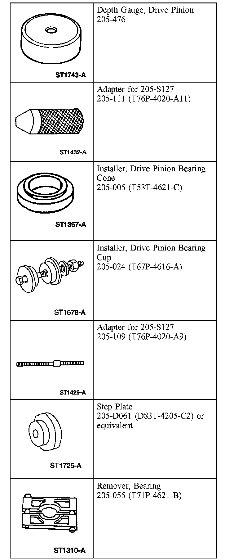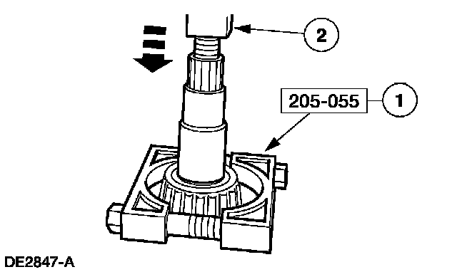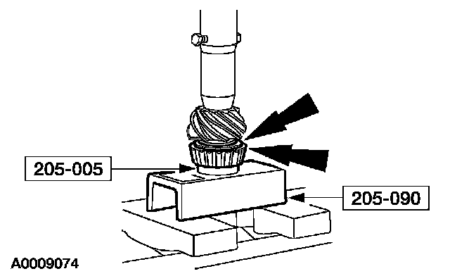12. Using the special tools and a suitable press, firmly seat the differential pinion bearing adjustment shim and inner pinion bearing on the differential pinion stem.