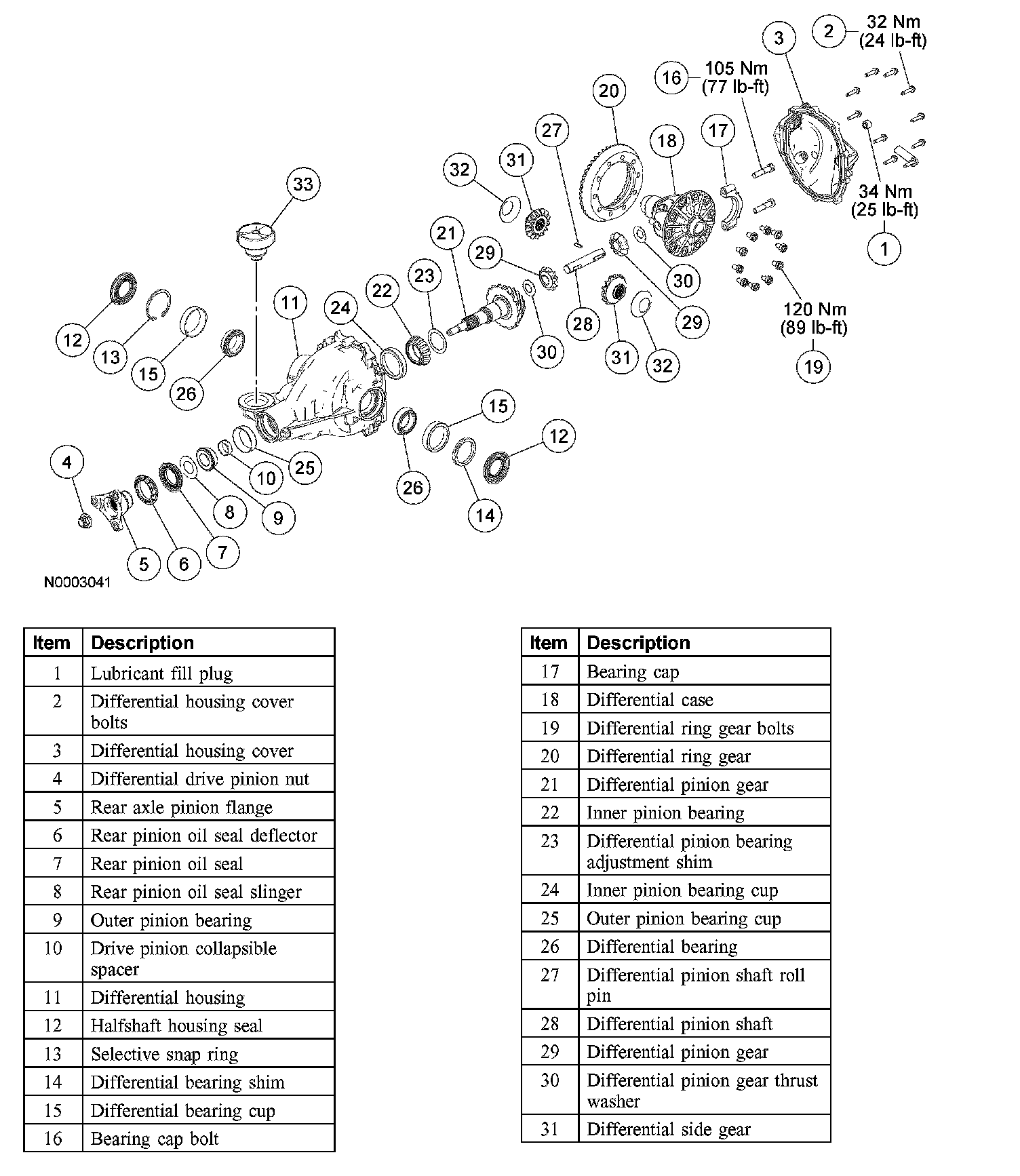 19. CAUTION: Do not, under any circumstance, loosen the differential drive pinion nut to reduce differential pinion bearing preload. If it is necessary to reduce differential pinion bearing preload, install a new drive pinion collapsible spacer and differential drive pinion nut.
