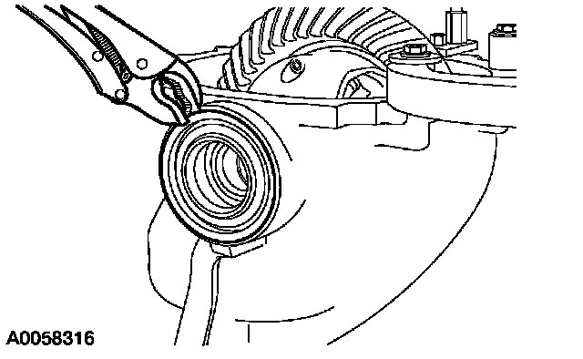 13. Install gripping pliers and strike with a hammer to remove the halfshaft housing seal from the housing.