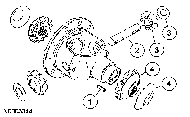 3. Remove the differential pinion gears and differential pinion gear thrust washers.