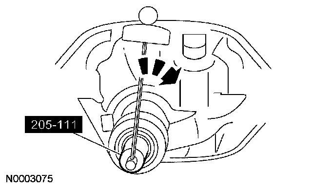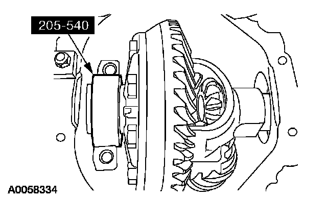 Rotate the special tool several half turns to seat the differential pinion bearings. Position the special tool as shown.