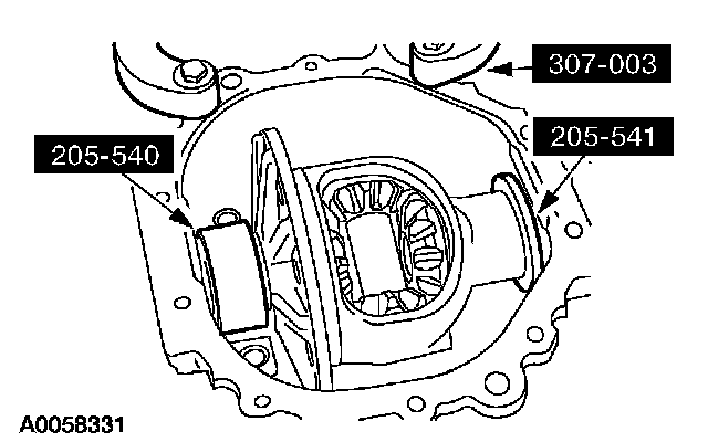 ^ Position the special tool and the bearing cup(s) in the differential housing.