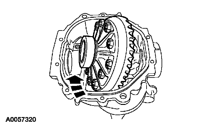 Position the differential bearing shim indicated by the differential bearing shim selection chart.