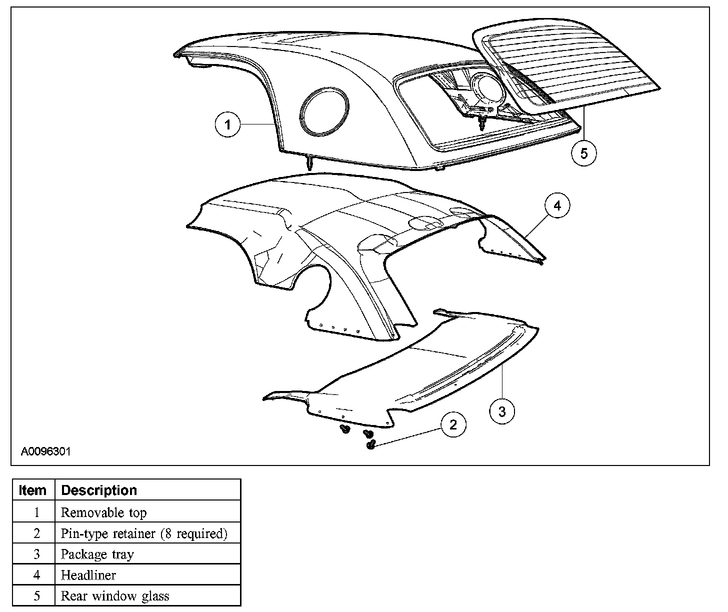 NOTE: For removal and installation of the convertible top rear window glass, refer to Convertible Top.